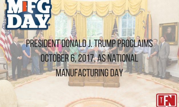The White House Office of the Press Secretary For Immediate Release October 06, 2017 National Manufacturing Day, 2017 – – – – – – – By the President of the United States of America A Proclamation America’s manufacturers have laid the foundation for our Nation’s vibrant economy and have secured our reputation … Continue reading President Donald J. Trump Proclaims October 6, 2017, as National Manufacturing Day