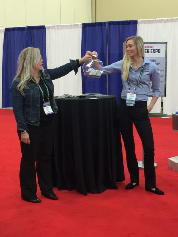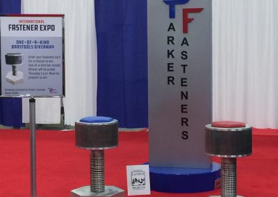 Elegant and refined, Parker Fasteners booth showed how sexy fasteners can really be! Parker Fasteners has continued to be a strong contestant for the Best Booth Awards over the past few years. This company is so creative in so many ways. From the ‘fastenating’ furnishings in their luxury booth, too the ultra soft ‘forging the future’ tees, their booth and participation in the expo is exceptional. show attendees had a chance to win a set of the handcrafted fastener bar stools as as a prize in a business card drawing.