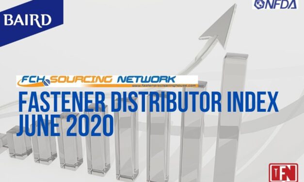 Fastener Distributor Index (FDI) survey for June 2020 The Fastener Distributor Index (FDI) for June, 2020. Business seemed to react to the re-openings with gusto, as the FDI climbed to 56.9, again improving after the May reading of 45.0, seasonally adjusted. The forceful rebound was largely fueled by the soaring sales index portion of the … Continue reading FASTENER DISTRIBUTOR INDEX (FDI) SURVEY | JUNE 2020