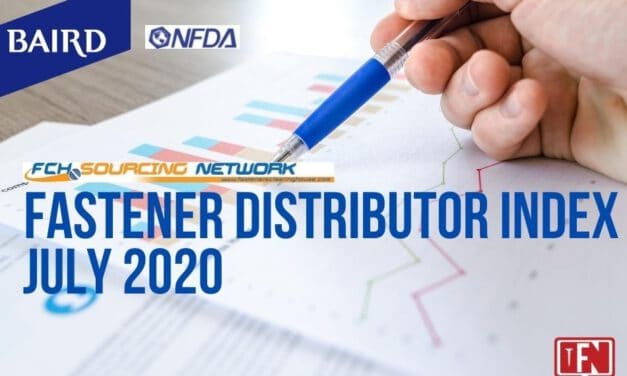 Fastener Distributor Index (FDI) survey for July 2020 The results of the Fastener Distributor Index (FDI) for July, 2020, Business showed continued resilience during the month, coming in at 54.6 after June’s dramatic 56.9 rebound, seasonally adjusted. The positive reading was once again buoyed by the strong sales portion of the index, which shot up … Continue reading FASTENER DISTRIBUTOR INDEX (FDI) SURVEY | JULY 2020