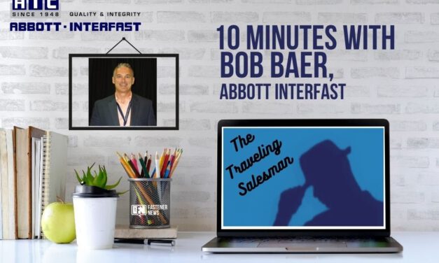 January 4, 2021 / travelingsalesman / 2 Comments TS: You are an accountant by trade. How the heck did you get yourself so deep into the fastener industry in what seems like a short amount of time? You have served as president of MWFA and been on the FIC board for years. How did all this happen to … Continue reading 10 Minutes with Bob Baer, Abbott Interfast