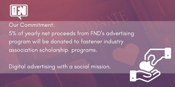 Not only will you receive a highly viewed advert on our website, but you will be supporting industry scholarships. Fastener News Desk is committed to donating 5% of our yearly net proceeds to the various fastener association scholarship programs. Advertise online where B2B buyers are looking and help support industry scholarship programs at the same time.