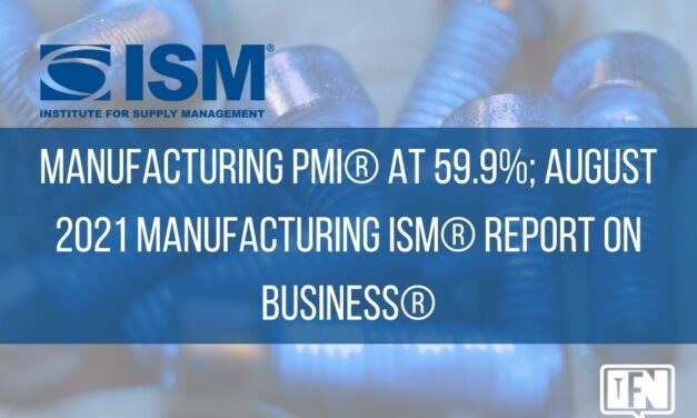 NEWS PROVIDED BY Institute for Supply Management Sep 01, 2021, 10:00 ET New Orders and Production Growing; Employment Contracting; Supplier Deliveries Slowing at Slower Rate; Backlog Growing; Raw Materials Inventories Growing; Customers’ Inventories Too Low; Prices Increasing; Exports and Imports Growing TEMPE, Ariz., Sept. 1, 2021 /PRNewswire/ — Economic activity in the manufacturing sector grew in August, with the overall economy … Continue reading Manufacturing PMI® at 59.9%; August 2021 Manufacturing ISM® Report On Business®