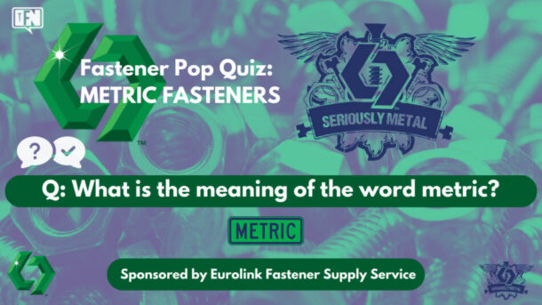Are you ready to test your knowledge of Fasteners? [SPONSOR] EUROLINK FASTENER SUPPLY SERVICE “HARD-TO-FIND METRIC FASTENERS…DELIVERED” QUESTION: What is the meaning of the word metric? A: WATCH VIDEO NOW FOR THE CORRECT ANSWER Eurolink is the premier US distributor of metric fasteners and fastener lines with hard-to-find metric fasteners manufactured to both DIN and … Continue reading Fastener Pop Quiz: METRIC FASTENERS