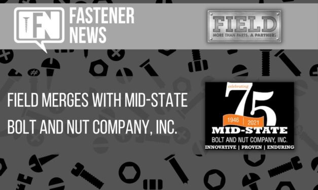 Rockford, IL (1/27/2023) – Field announced today that it has merged with Mid-State Bolt & Nut Company, a full-line fastener distributor headquartered in Columbus, OH. Terms of the deal were not disclosed. Mid-State Bolt & Nut Company, who was founded in 1946, brings value to the OEM marketplace through creative and efficient supply chain solutions … Continue reading FIELD MERGES WITH MID-STATE BOLT AND NUT COMPANY, INC.