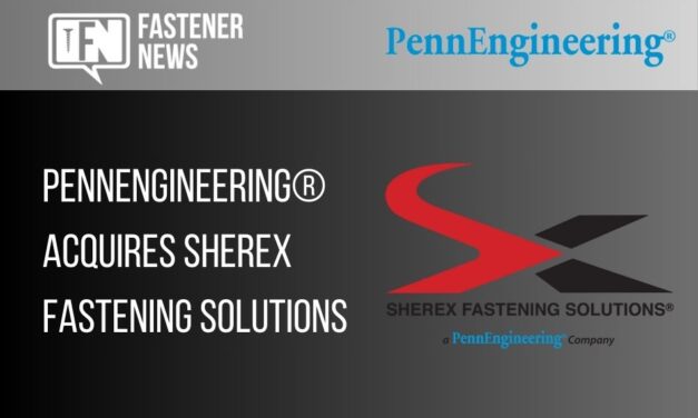 Acquisition expands PennEngineering’s product portfolio and technical reach January 16, 2024 10:05 AM Eastern Standard Time DANBORO, Pa.- PennEngineering® announced the acquisition of Sherex® Fastening Solutions, a global leader in the design, manufacturing, and installation of blind rivet nuts and associated fastening solutions. “Teaming up with PennEngineering allows Sherex to provide our customers with additional global … Continue reading PennEngineering® Acquires Sherex Fastening Solutions